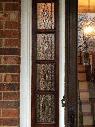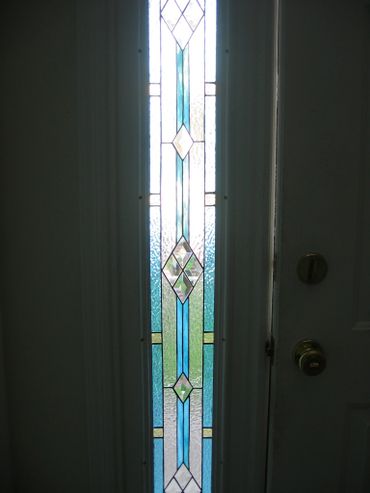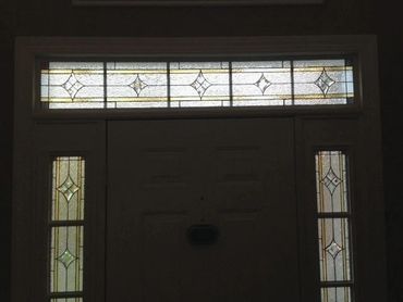 Sidelights come in all sizes, but they all have one thing in common...they let people see into your home! Stained glass is the perfect solution. If you want to allow as much light as possible, we will use a textured clear glass. The texture distorts (if not hides) the view while letting the light come through.